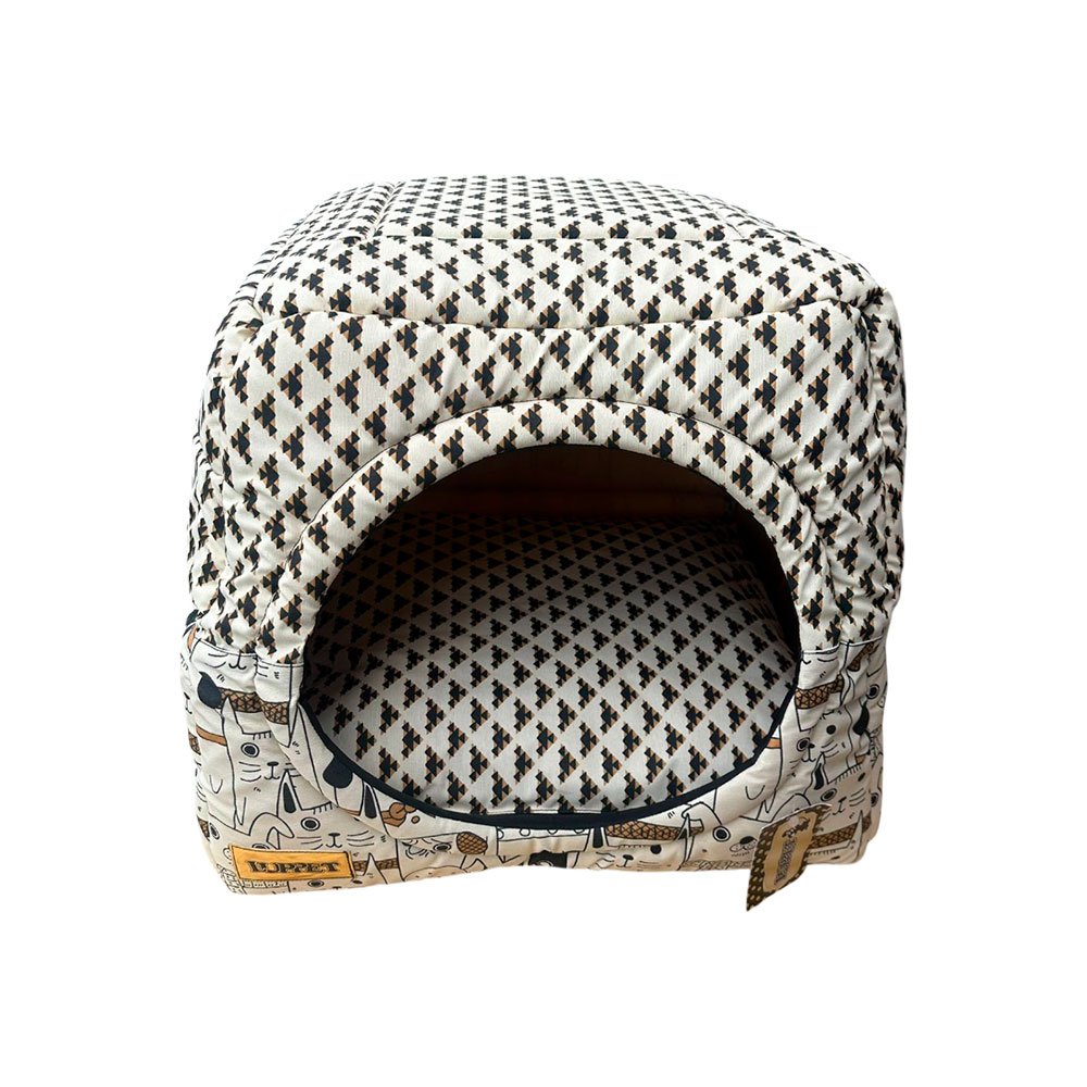 Caminha Toca Pet para Cachorro mod Quadrada Impermeável Luppet M na cor Bege Cachorrinhos e Motivos Geométricos