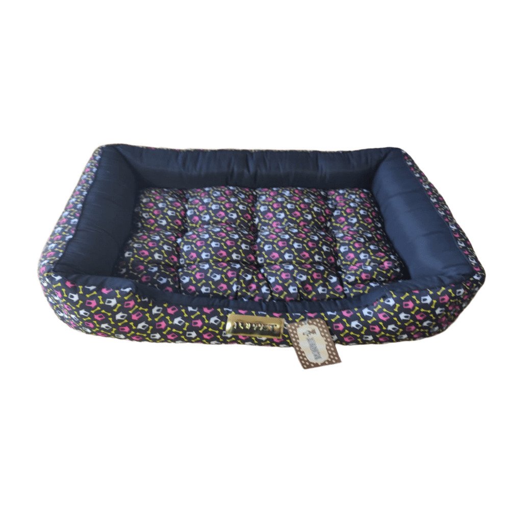 Caminha Pet para Cachorro mod retangular Luxo Luppet G na cor Preto Ossinhos